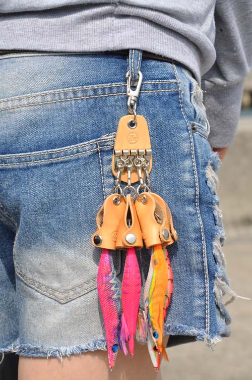 | 第一弾は、イカを釣る、釣り方の一つに、エギングがあります。そのエギングではエビの形をした疑似エギで釣ります、しかしこのエギの下部分には、とても鋭利な針が装着されており、この針のカバーが今まではプラスチック製品しかありませんでした、そこでフィッシングエルエルエーでは、もっと簡単に装着しぶら下げて使える、エギ交換がもっとスムーズにできる物がないか考え抜いた所、生まれた エギケースクワッド アイデア商品の誕生です。 |