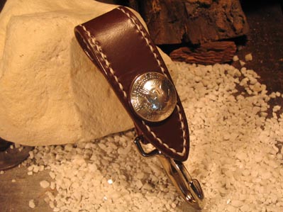 ベルトに通すタイプのキーホルダー。財布とロープと一緒に使う形の3点セットでお勧めしています。もちろん手持ちで使ってもOK!
