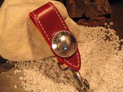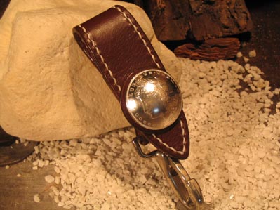 ベルトに通すタイプのキーホルダー。財布とロープと一緒に使う形の3セットでお勧めしています。もちろん手持ちで使ってもOK!