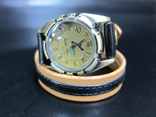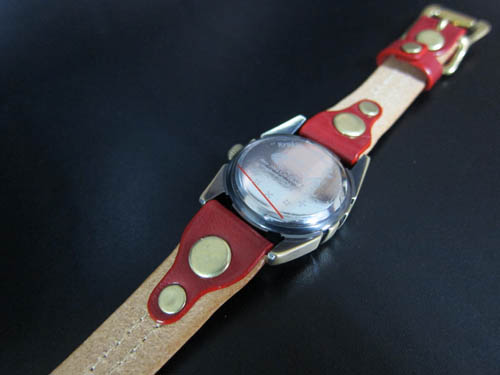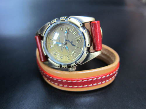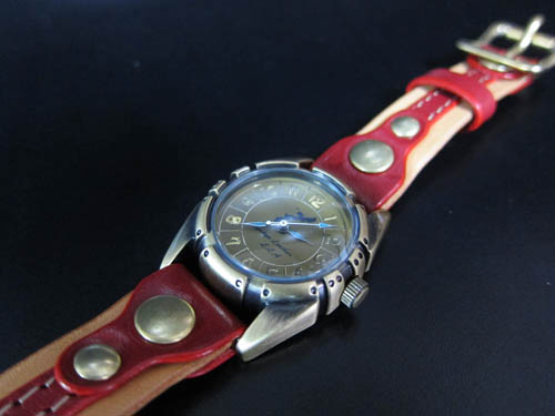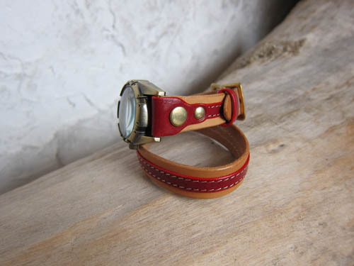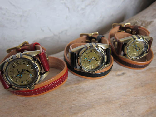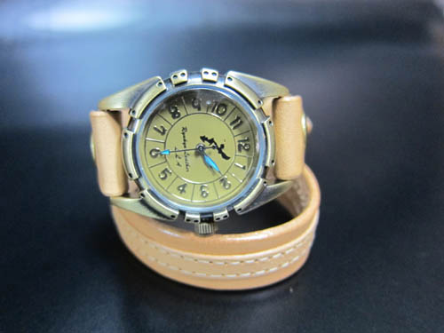 真鍮時計シリーズ 第二弾は二連時計を製作しました。MESHでは少しゴツすぎるというお客様向けに、15mm幅の革を二重に巻くタイプです。