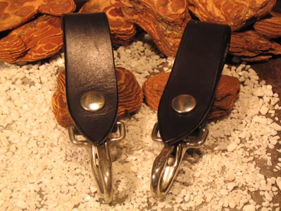 先端の金具をシザーケースの両サイドに掛け、ベルトに通して使用します。