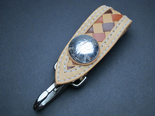 ベルトに通すタイプのキーホルダー。財布とロープと一緒に使う形の3点セットでお勧めしています。もちろん手持ちで使ってもOK!