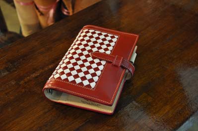 大きく織の入った聖書サイズのシステム手帳です!ポピュラーな6穴タイプでカード入れもたくさんあるので使いやすさは抜群です。