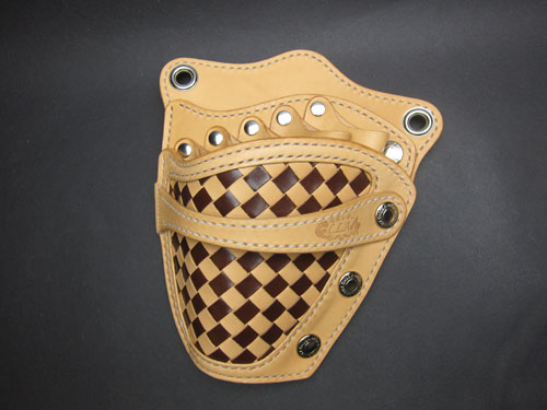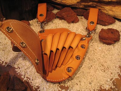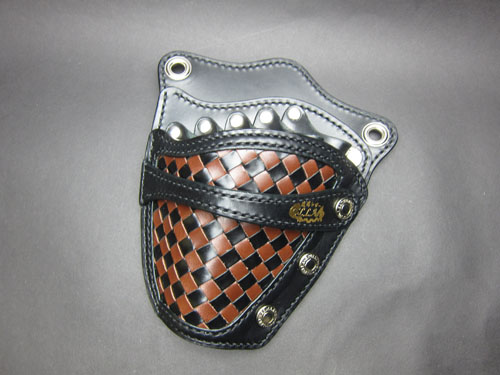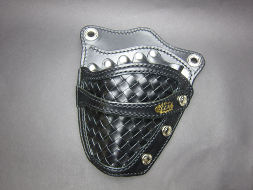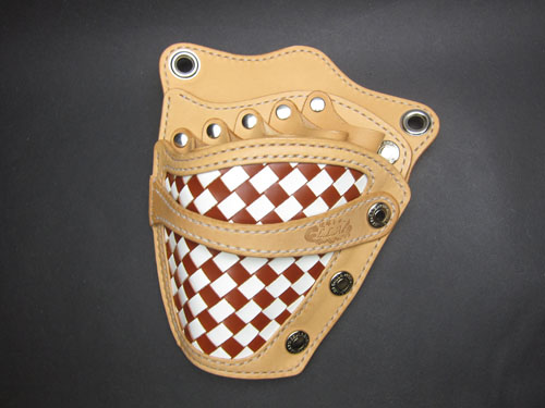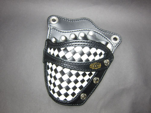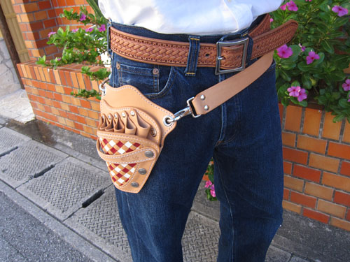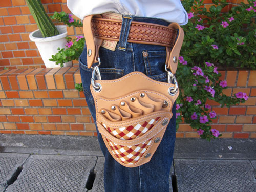 美容師さんが髪を切るハサミなどを入れるケースにメッシュを 埋め込んだ商品です。革が好きで少しハードな感じが似合う かたにお勧めな商品です。