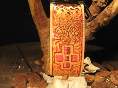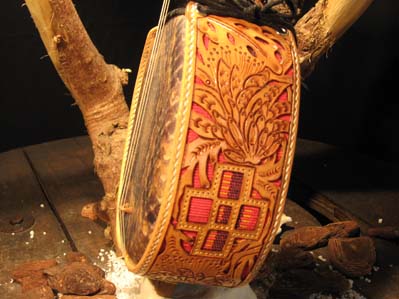フラワーカービングを融合したデザイン。沖縄三線とのベストマッチ。デイゴの花を採用しました。
