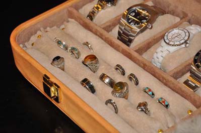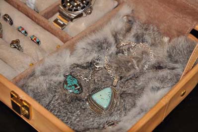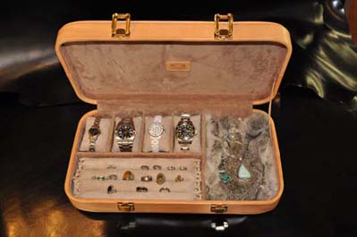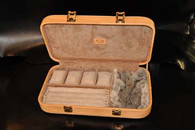 大型のジュエリーケース販売開始!時計 指輪 ネックレスなど、様々な大切なジュエリーが収納可能、内装には、ピッグスエードを施しラビットファー(ウサギの毛革)の上にそっとペンダントなどを置ける作りになっております。