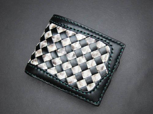 黒革×パイソンはグリーン糸